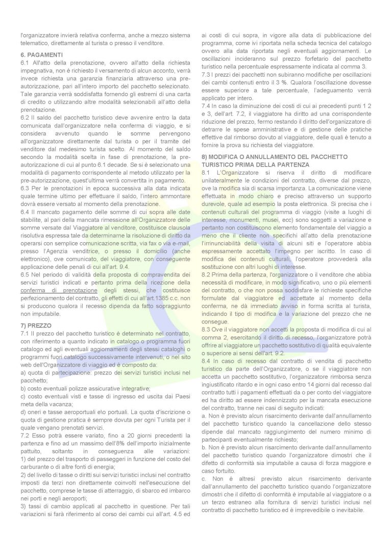 Al fine di migliorare la qualità e l’organizzazione dei servizi erogati, invitiamo la gentile clientela a prendere visione delle seguenti condizioni che si applicano a tutti i viaggi organizzati da Omega Travel e Molise Tour.