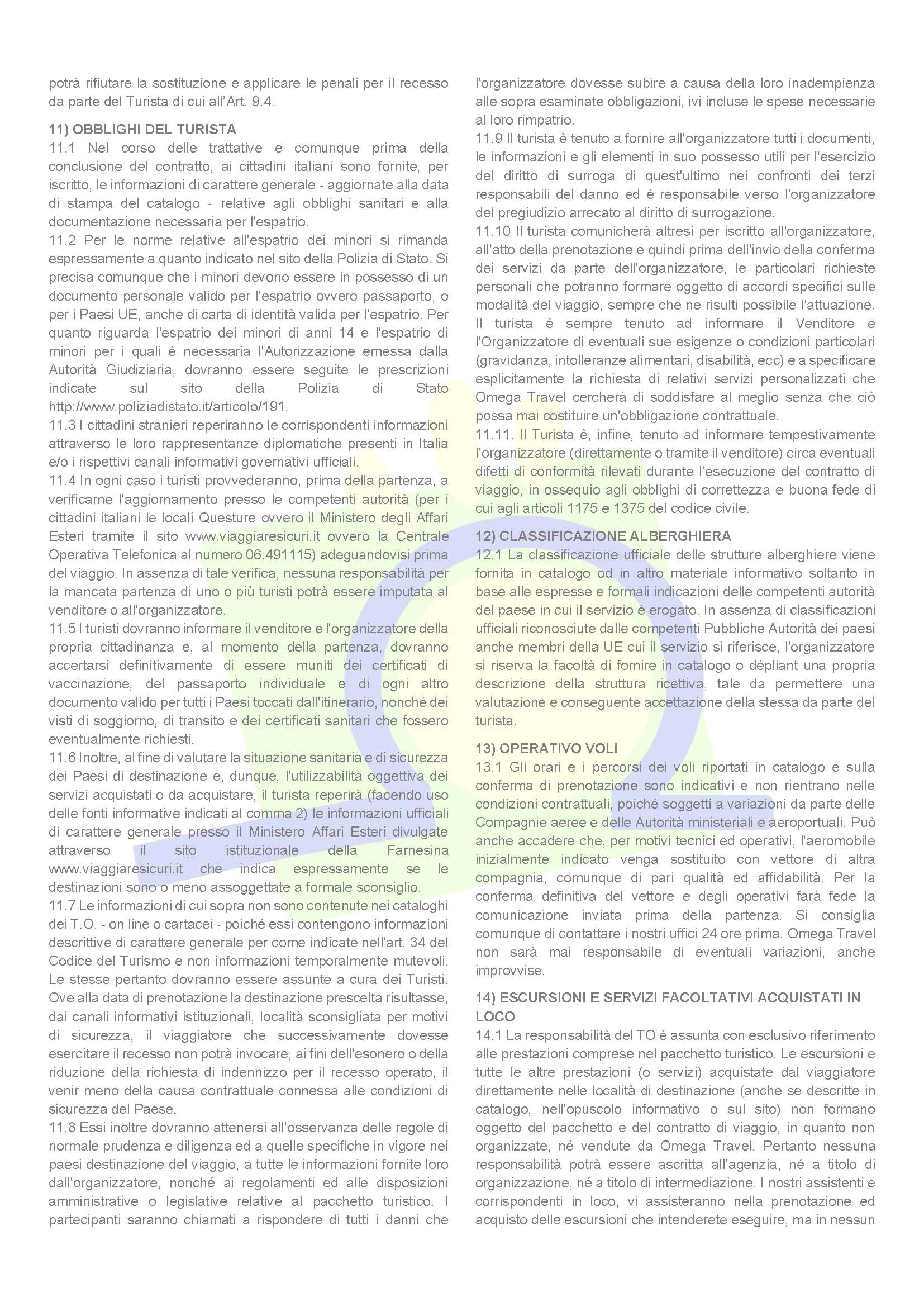 Al fine di migliorare la qualità e l’organizzazione dei servizi erogati, invitiamo la gentile clientela a prendere visione delle seguenti condizioni che si applicano a tutti i viaggi organizzati da Omega Travel e Molise Tour.